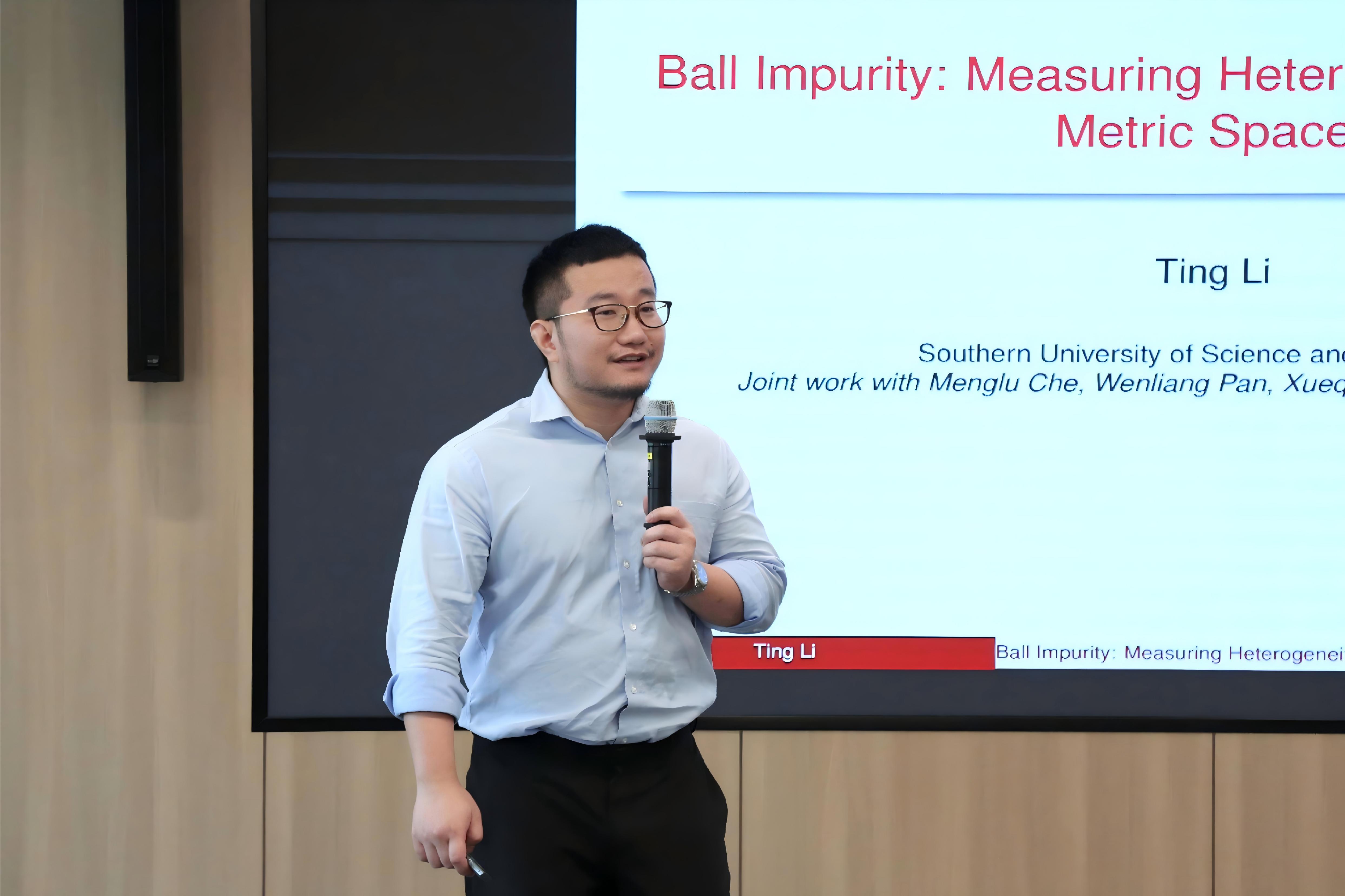 2026年3月30日,南方科技大学李挺副教授访问高清无码 ,并作学术报告,报告题目是Ball Impurity: Measuring Heterogeneity in General Metric Spaces