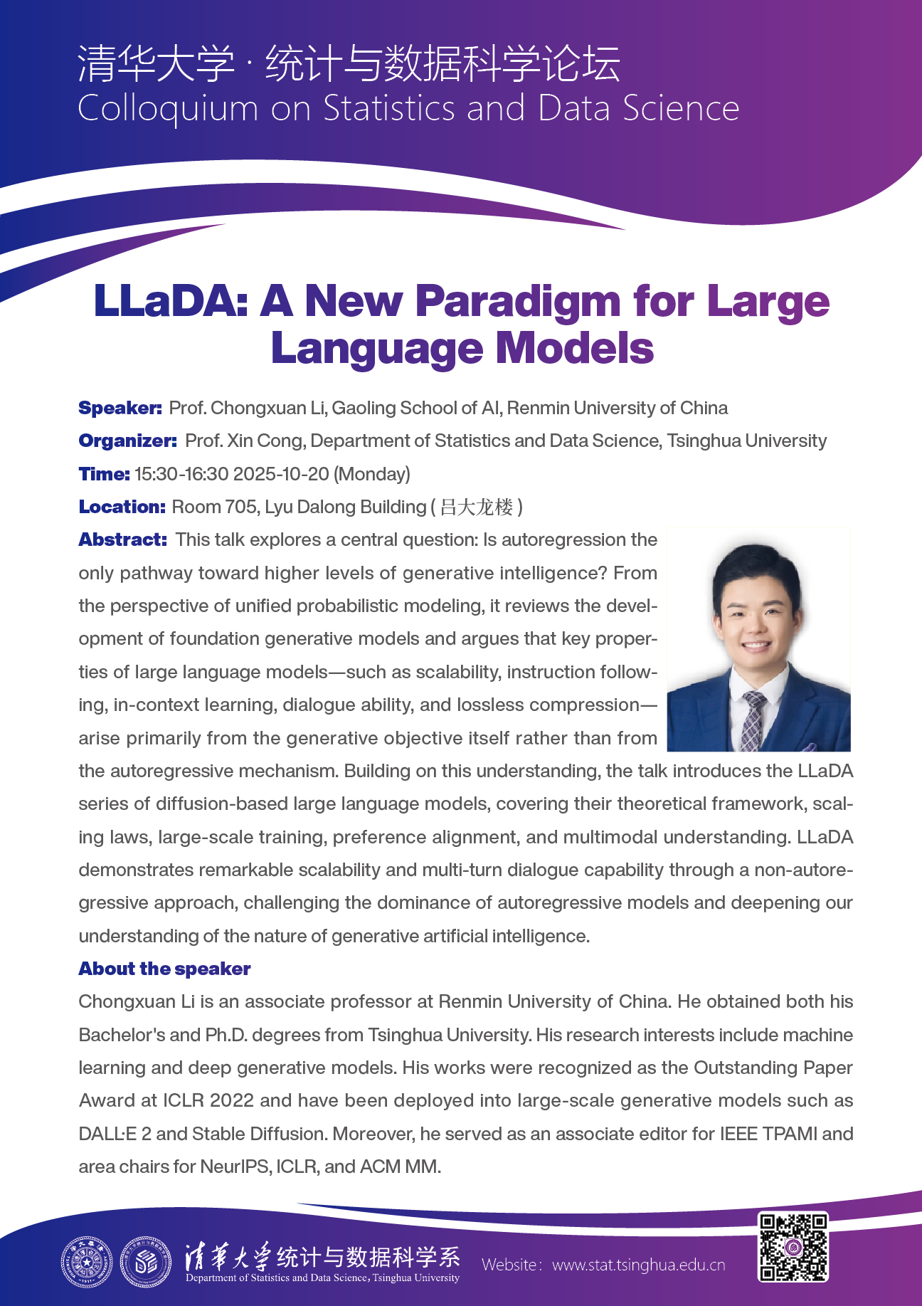 【统计与数据科学论坛】LLaDA: A New Paradigm for Large Language Models